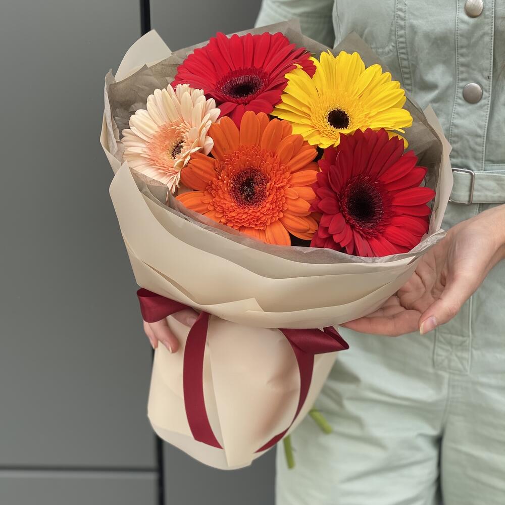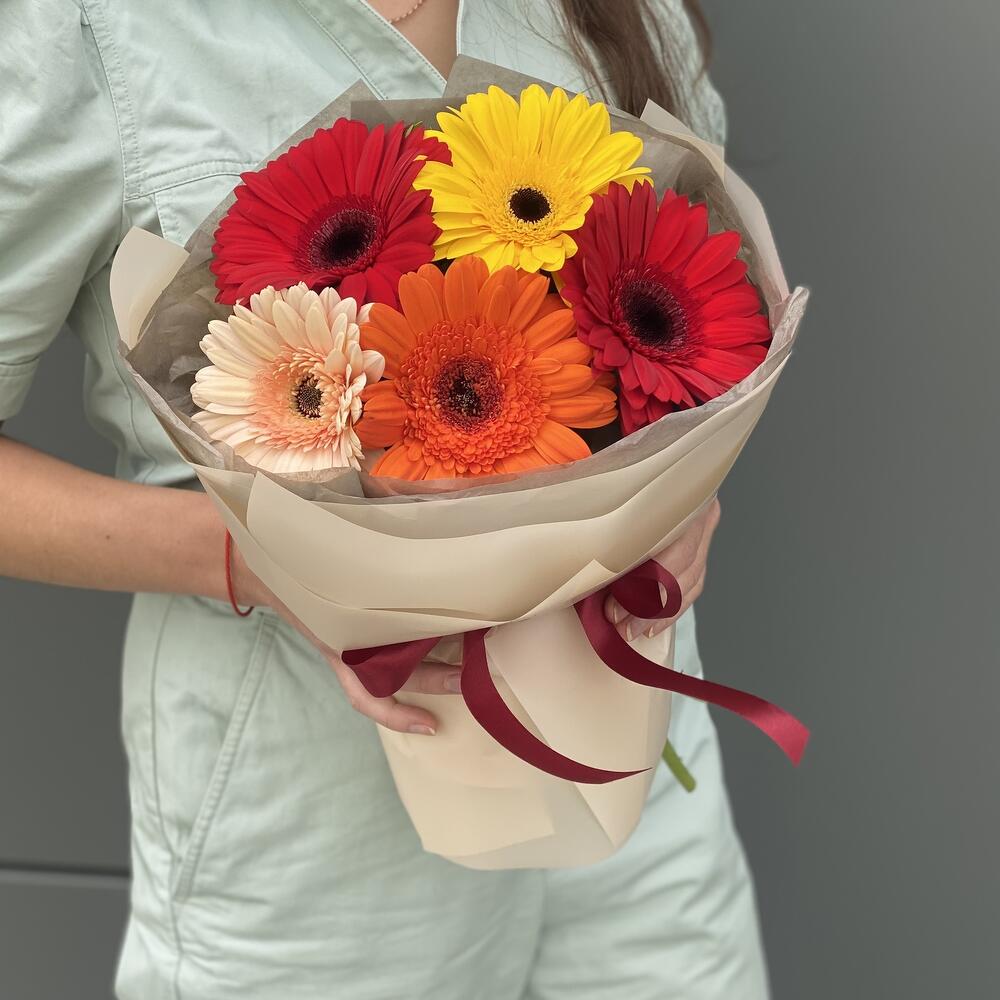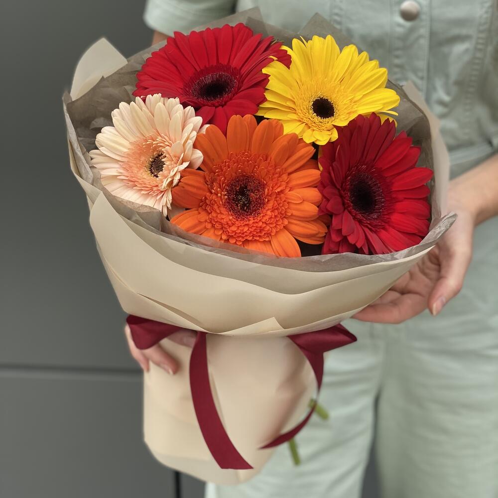 Писташ - 1 шт. Оформление - 1 шт. герберы - 5 шт.